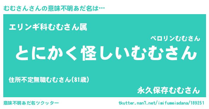 | 男性向けラノベタイトル風あだ名 | 『緋弾のムムサン』『むむさんの憂鬱』 |
