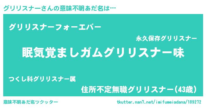 | ヘコむあだ名 | 『牛乳』『グリリスナー(笑)』 |