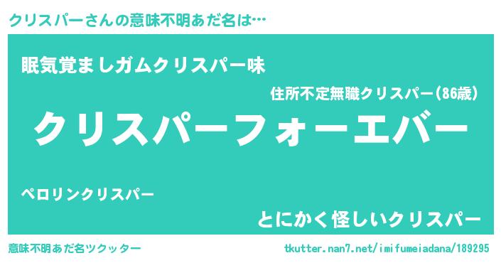 | 男性向けラノベタイトル風あだ名 | 『やはりクリスパーの青春ラブコメはまちがっている 』 |