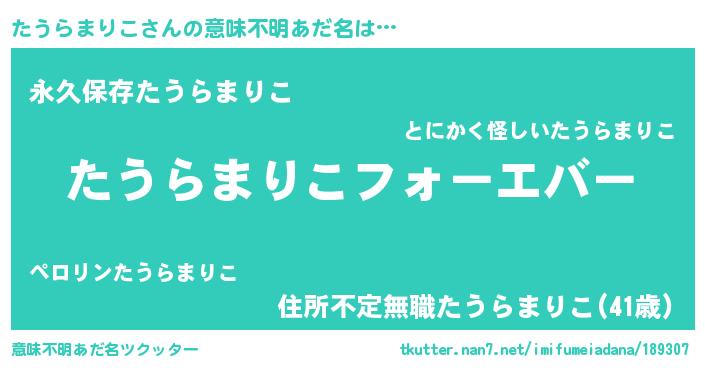 | 男性向けラノベタイトル風あだ名 | 『やはりたうらまりこの青春ラブコメはまちがっている 』 |