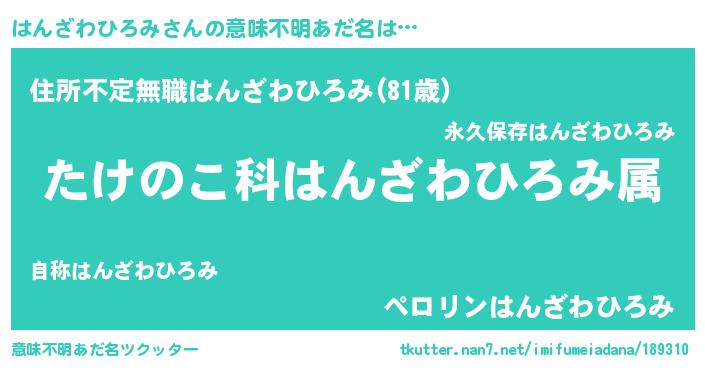 | 料理風あだ名 | 『はんざわひろみごはん』 |