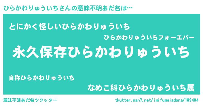 | ヘコむあだ名 | 『ひらかわりゅういち(苦笑)』『ひらっちょ』 |