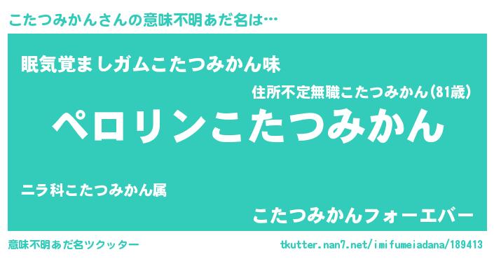 | 胡散臭い通販商品みたいなあだ名 | 『必ず成功する霊験あらたかなお札…その名も「こたつみかん」』 |