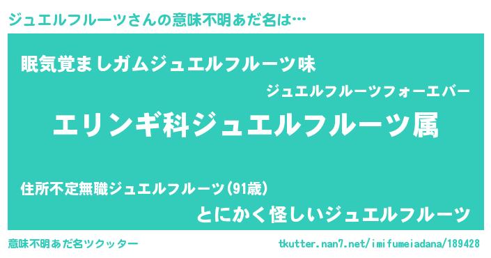| 男性向けラノベタイトル風あだ名 | 『ジュエルフルーツスレイヤー』 |