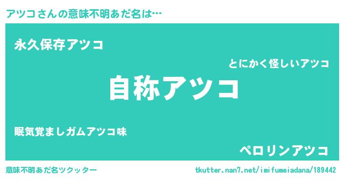 | 女子向けラノベタイトル風あだ名 | 『闇のアツコ』『アツコの契約王妃』 |