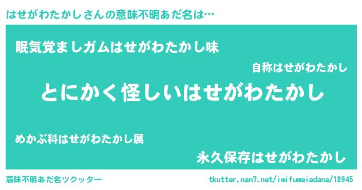 | 男性向けラノベタイトル風あだ名 | 『はせがわたかしに滅ぼされるだけの簡単なお仕事です』 |