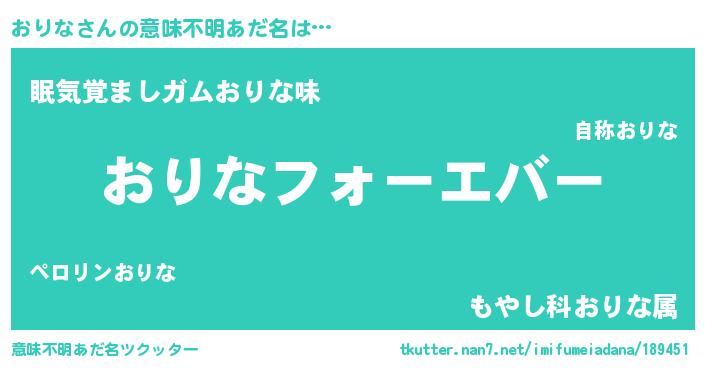 | 女子向けラノベタイトル風あだ名 | 『おりな伯爵の花嫁』『おりな恋絵巻』 |