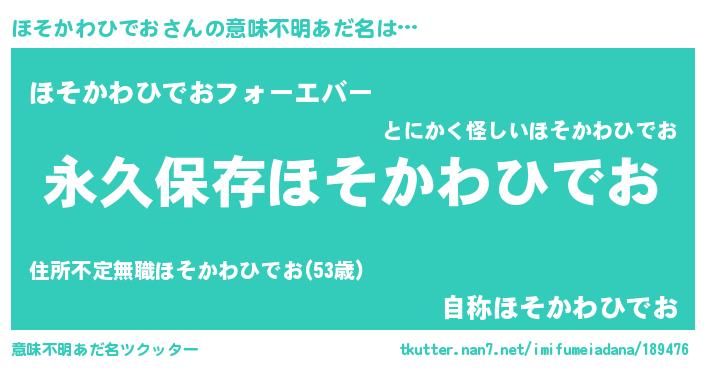 | 男性向けラノベタイトル風あだ名 | 『ほそかわひでおという概念が存在しない退屈な世界 』 |