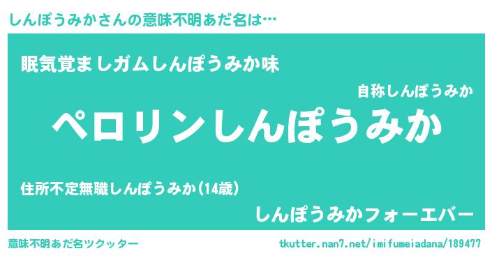 | ヒーロー風カッコイイあだ名 | 『スーパーシンポウミカ』『仮面シンダー』 |