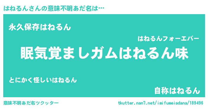 | ヘコむあだ名 | 『はねるん(笑)』『酢こんぶ』 |