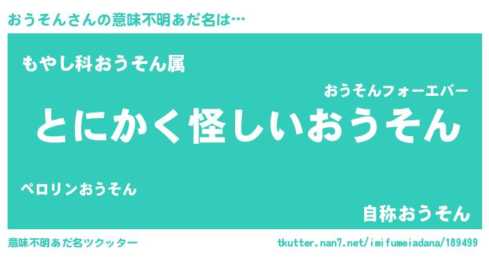 | ヒーロー風カッコイイあだ名 | 『幻影騎士オウ』『サイバー戦士オウソン』 |