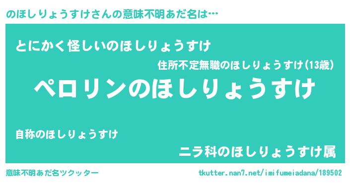 | 欧米人風あだ名 | 『マイケルのほしりょうすけ』 |