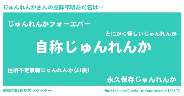 | ヒーロー風カッコイイあだ名 | 『最強戦士ジュンレンカ』『幻影騎士ジュ』 |