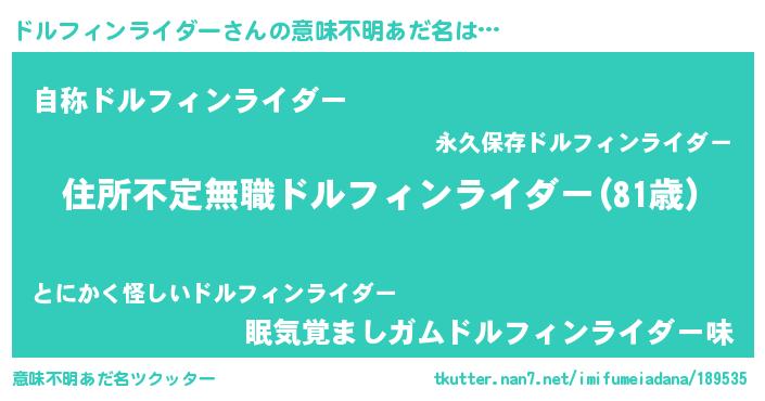 | 男性向けラノベタイトル風あだ名 | 『この素晴らしい世界にドルフィンライダーを!』 |