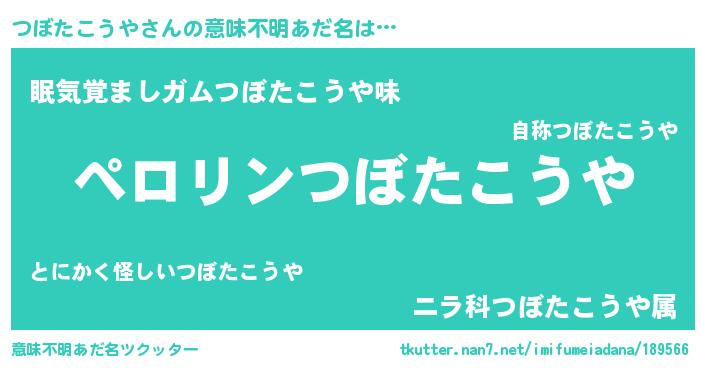 | ヒーロー風カッコイイあだ名 | 『スーパーツボタコウヤ』『幻影騎士ツボ』 |