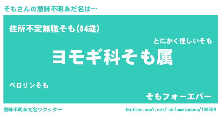 | 胡散臭い通販商品みたいなあだ名 | 『あなたにだけ特別に提供する世界で10本だけ現存している希少なブランデー…その名も「そも」』 |