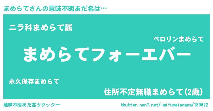 | 肩書あだ名 | 『まめらて国家主席』『まめらて少将』 |