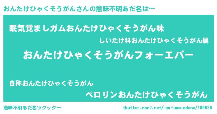 | 肩書あだ名 | 『おんたけひゃくそうがん大統領』 |