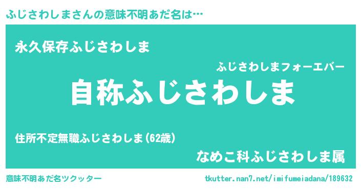 | 男性向けラノベタイトル風あだ名 | 『Re:ふじさわしまから始める異世界生活』 |