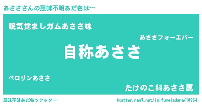 | ヒーロー風カッコイイあだ名 | 『最強戦士アササ』『友情の使者あささ』 |