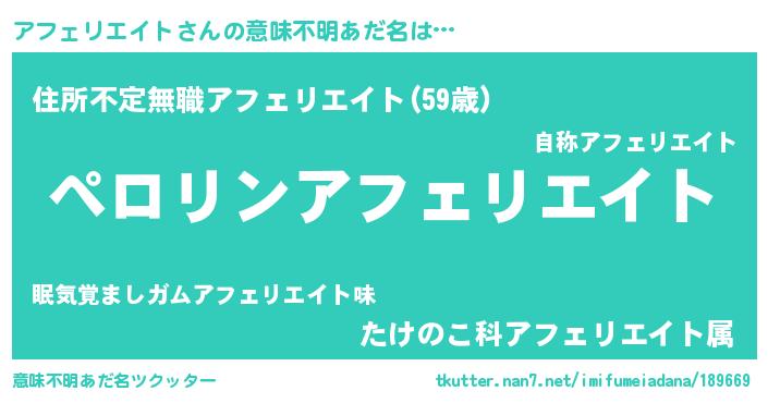 | ヘコむあだ名 | 『アフにー』『アフェリエイト(遠い目)』 |