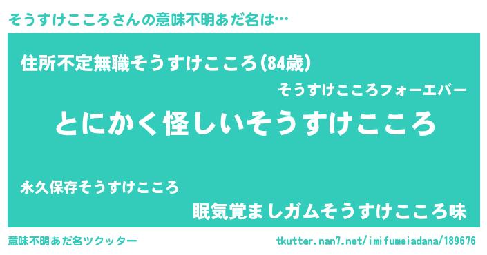 | 女子向けラノベタイトル風あだ名 | 『そうすけこころは平凡を望む』 |