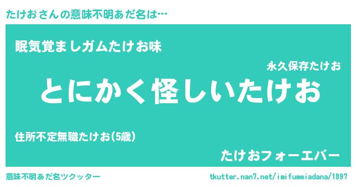 | 女子向けラノベタイトル風あだ名 | 『たけお様がみてる』『たけおの契約王妃』 |