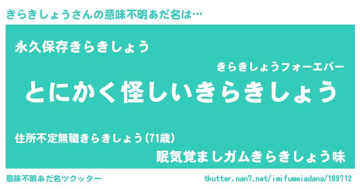 | 女子向けラノベタイトル風あだ名 | 『きらきしょう様がみてる』 |