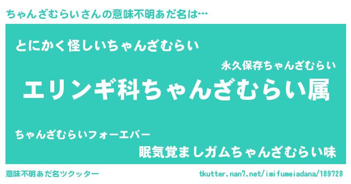 | 男性向けラノベタイトル風あだ名 | 『チャンザムライスレイヤー』 |