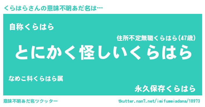 | 胡散臭い通販商品みたいなあだ名 | 『信頼と実績のサプリメント…その名も「くらはら」』 |