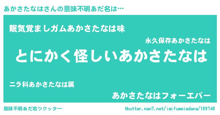 | 男性向けラノベタイトル風あだ名 | 『あかさたなはに滅ぼされるだけの簡単なお仕事です』 |