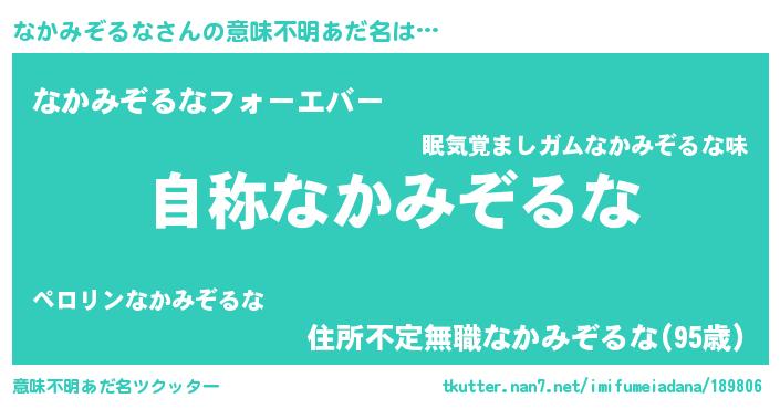 | 女子向けラノベタイトル風あだ名 | 『なかみぞるななんてお断りですっ。』 |