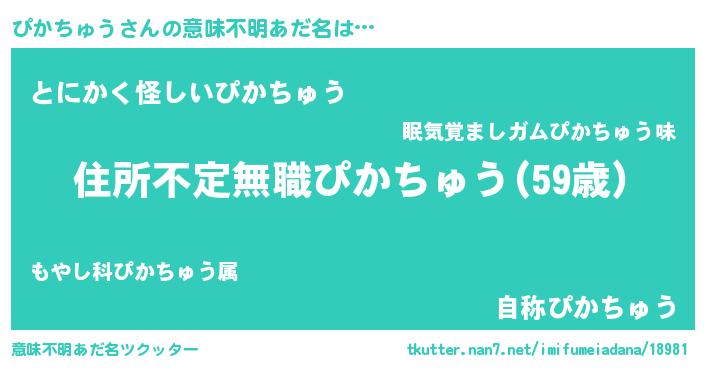 | 男性向けラノベタイトル風あだ名 | 『うちのぴかちゅうが世界を掌握している!』 |