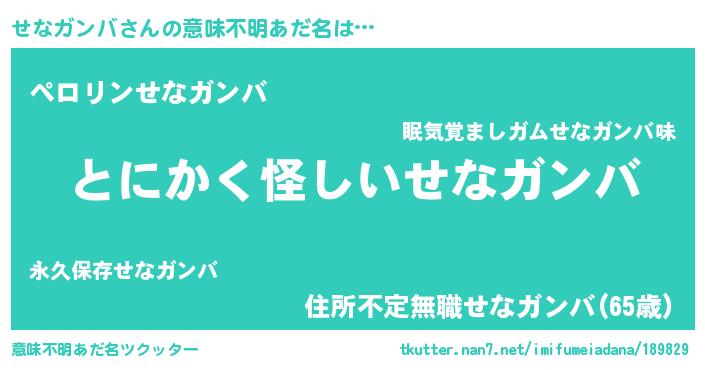 | 男性向けラノベタイトル風あだ名 | 『せなガンバの嫁は女の子じゃないと思った?』 |