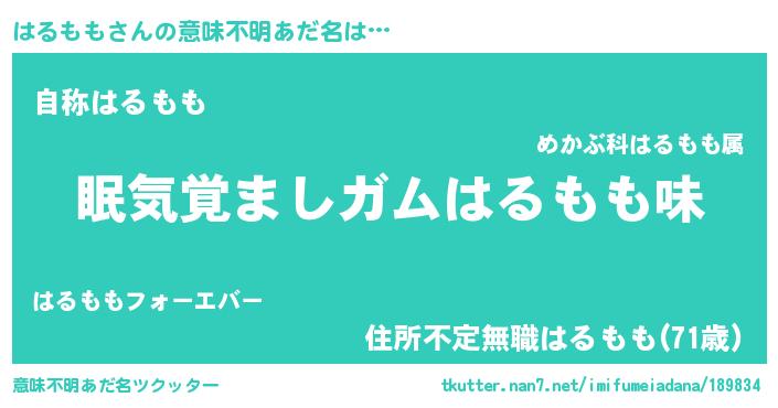 | 男性向けラノベタイトル風あだ名 | 『おまえをオタクにしてやるから、俺をはるももにしてくれ! 』 |