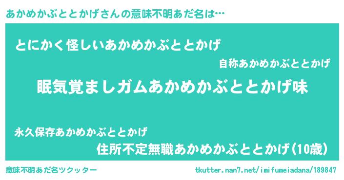 | 欧米人風あだ名 | 『ダニエルあかめかぶととかげ』 |