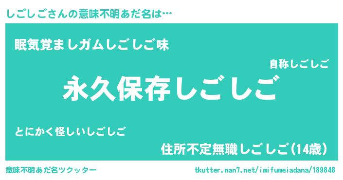 | 男性向けラノベタイトル風あだ名 | 『しごしごという概念が存在しない退屈な世界 』 |