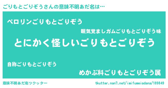 | 男性向けラノベタイトル風あだ名 | 『ごりもとごりぞうに滅ぼされるだけの簡単なお仕事です』 |