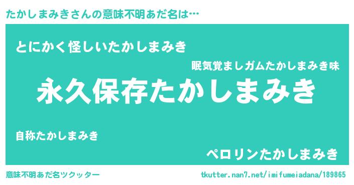 | ヘコむあだ名 | 『たかしまみき(爆)』『たかっぺ』 |