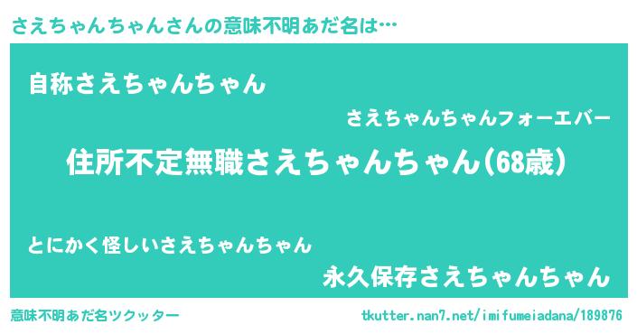 | ヒーロー風カッコイイあだ名 | 『仮面サエダー』『ネオサエチャンチャン』 |