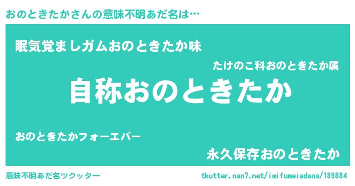 | ヘコむあだ名 | 『おのときたか(遠い目)』『なまこ酢』 |