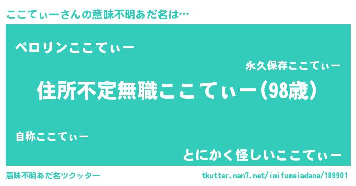 | 女子向けラノベタイトル風あだ名 | 『ここてぃーが死なない童話 林檎のここてぃーの診療簿』 |