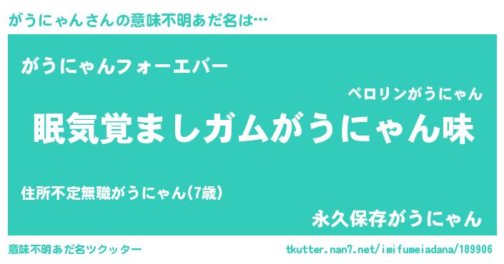 | 欧米人風あだ名 | 『ダニエルがうにゃん』 |
