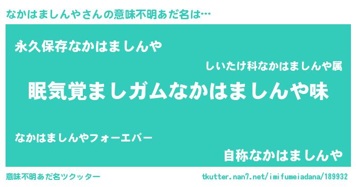 | ヘコむあだ名 | 『なかはましんや(震え声)』『酢こんぶ』 |