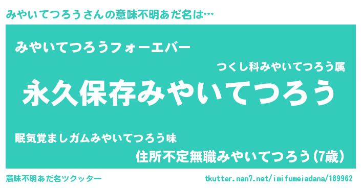 | ヘコむあだ名 | 『みやいてつろう(笑)』『豆乳』 |
