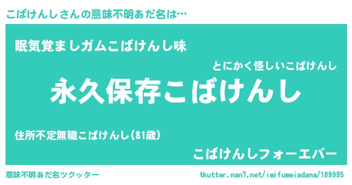 | 男性向けラノベタイトル風あだ名 | 『こばけんしに滅ぼされるだけの簡単なお仕事です』 |