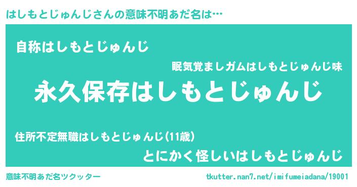 | 胡散臭い通販商品みたいなあだ名 | 『来世でも幸せになれる健康食品…その名も「はしもとじゅんじ」』 |