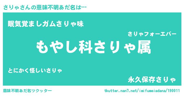 | 男性向けラノベタイトル風あだ名 | 『転生したらさりゃだった件』 |
