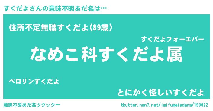 | 男性向けラノベタイトル風あだ名 | 『転生したらすくだよだった件』 |