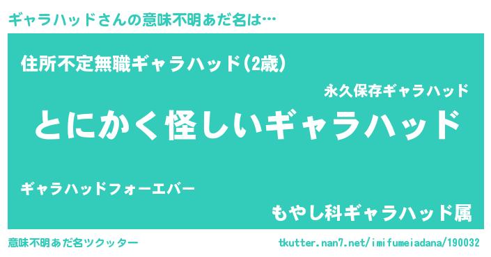 | ヘコむあだ名 | 『ギャっぺ』『ギャラハッド(小並感)』 |